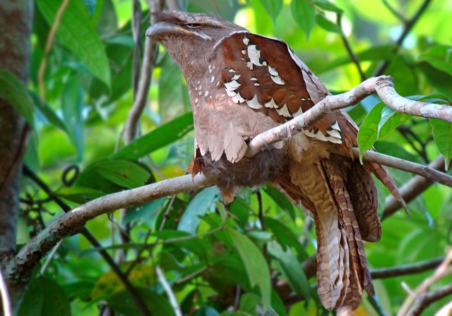 Malaysian Frogmouth : 3 - Note the subtle but clear plumage differences.. A bird that has been turning heads online after being spotted in sarawak is a dulit frogmouth. All central european alpine species can be observed here and the large and varied types of wetland contribute to the abundant bird life in the state. Warm, pale, brown overall with bright white spots on the wings. All frogmouths roost during the day and are active from dusk through part or all of the night until around dawn. But of course, as its name suggests, scientists think it looks more like a frog's mouth, and that's true as well.